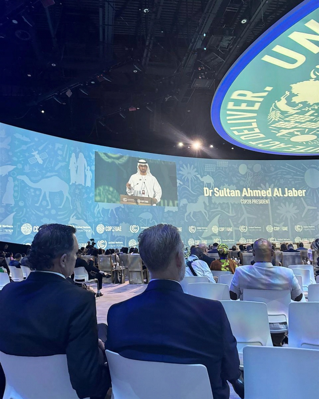 Desde la Expo City Dubái, el mandatario estatal compartió con líderes mundiales interesados en debatir sobre acciones y políticas, generar concesos e impulsar metas de mitigación para frenar el cambio climático, dado que solo restan siete años para cumplir los compromisos mundiales de limitar el aumento de temperatura promedio a 1,5 °C, reduciendo a la mitad las emisiones para el año 2030.