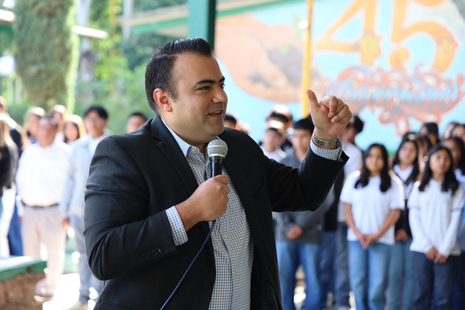 Acompañado de directivos de la institución y de funcionarios públicos, también felicitó a CBTA 115 por sus 45 años de servicio a la comunidad y destacó el papel que ha jugado en la formación de jóvenes colonenses capaces y comprometidos con su entorno.