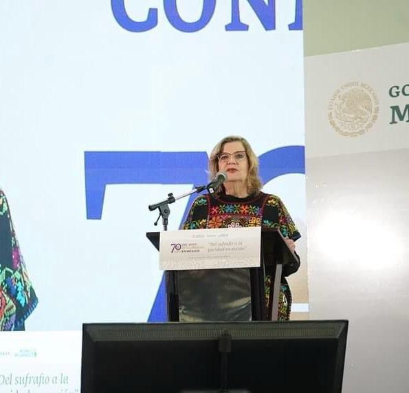 Gasman, en su discurso, rindió homenaje a la lucha sufragista y celebró los 70 años del voto femenino en México. Hizo énfasis en el actual gobierno progresista que centra su atención en las mujeres y destacó la presencia de 9 gobernadoras en el país, una cifra récord en la historia mexicana. Así mismo, señaló la importancia de garantizar los derechos territoriales de mujeres indígenas y agrarias.