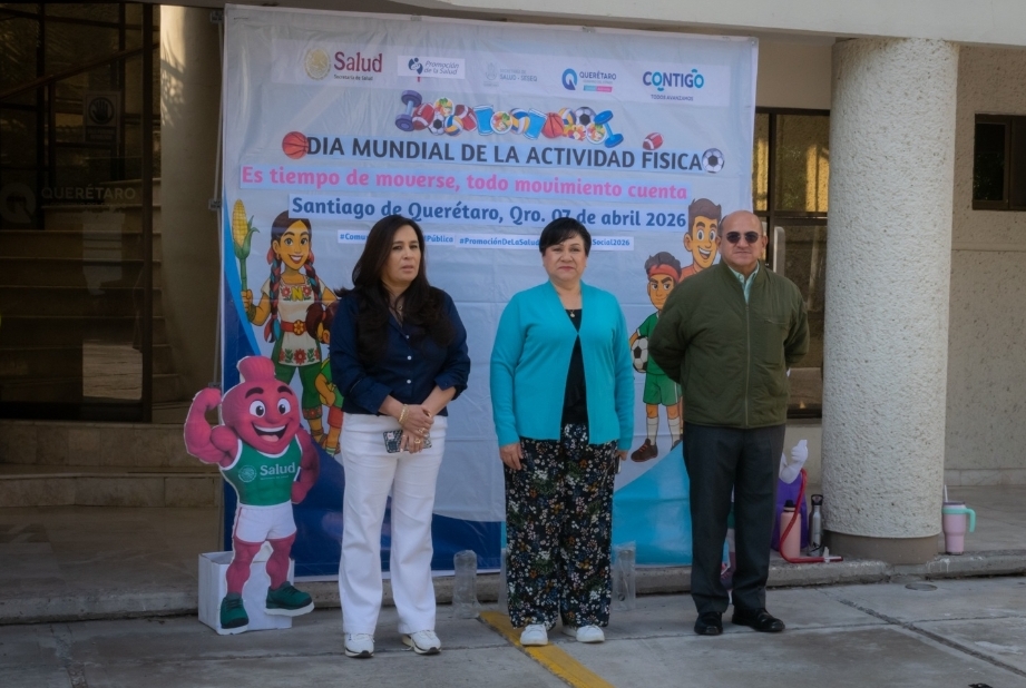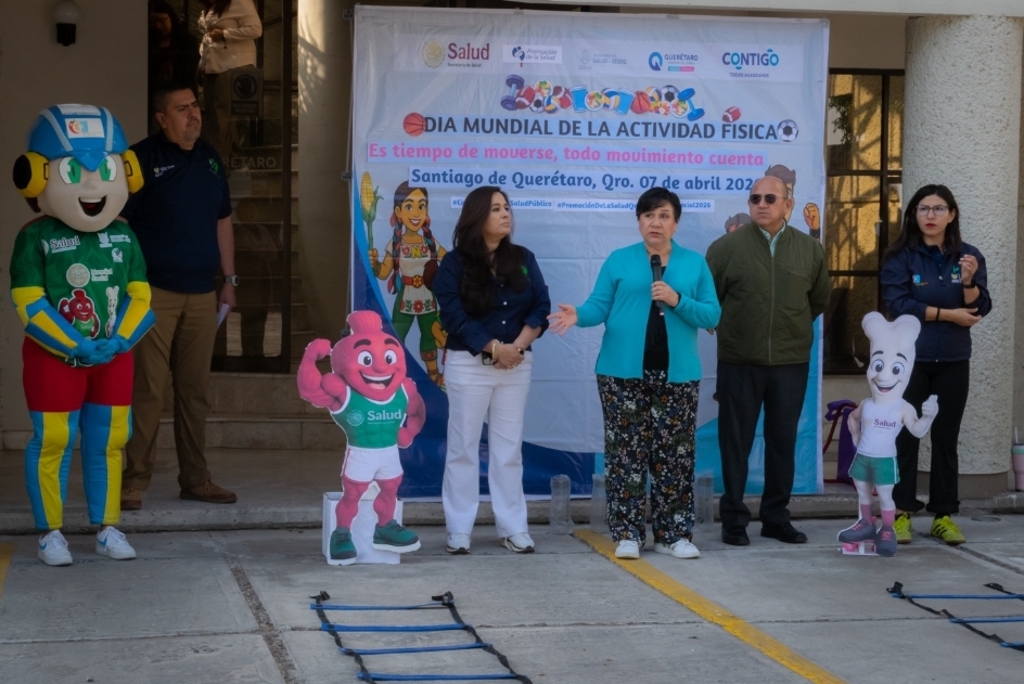 En el marco del Día Mundial de la Actividad Física y del Día Mundial de la Salud 2026, la titular de la Secretaría de Salud (SESA) del estado de Querétaro, María Martina Pérez Rendón, encabezó un evento realizado en el área de estacionamiento de las oficinas administrativas, donde se impulsaron acciones enfocadas a la prevención y el fortalecimiento de estilos de vida saludables entre el personal.