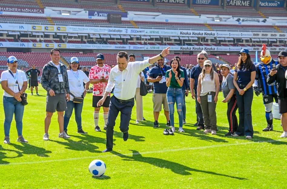 En el marco de la Semana de las y los Trabajadores, el gobernador Mauricio Kuri González dio la patada inicial que marcó el arranque del Torneo Relámpago de Futbol, el cual tiene como objetivo fomentar espacios de sana convivencia y promover la activación física entre los participantes, integrados en 32 equipos de esta edición.