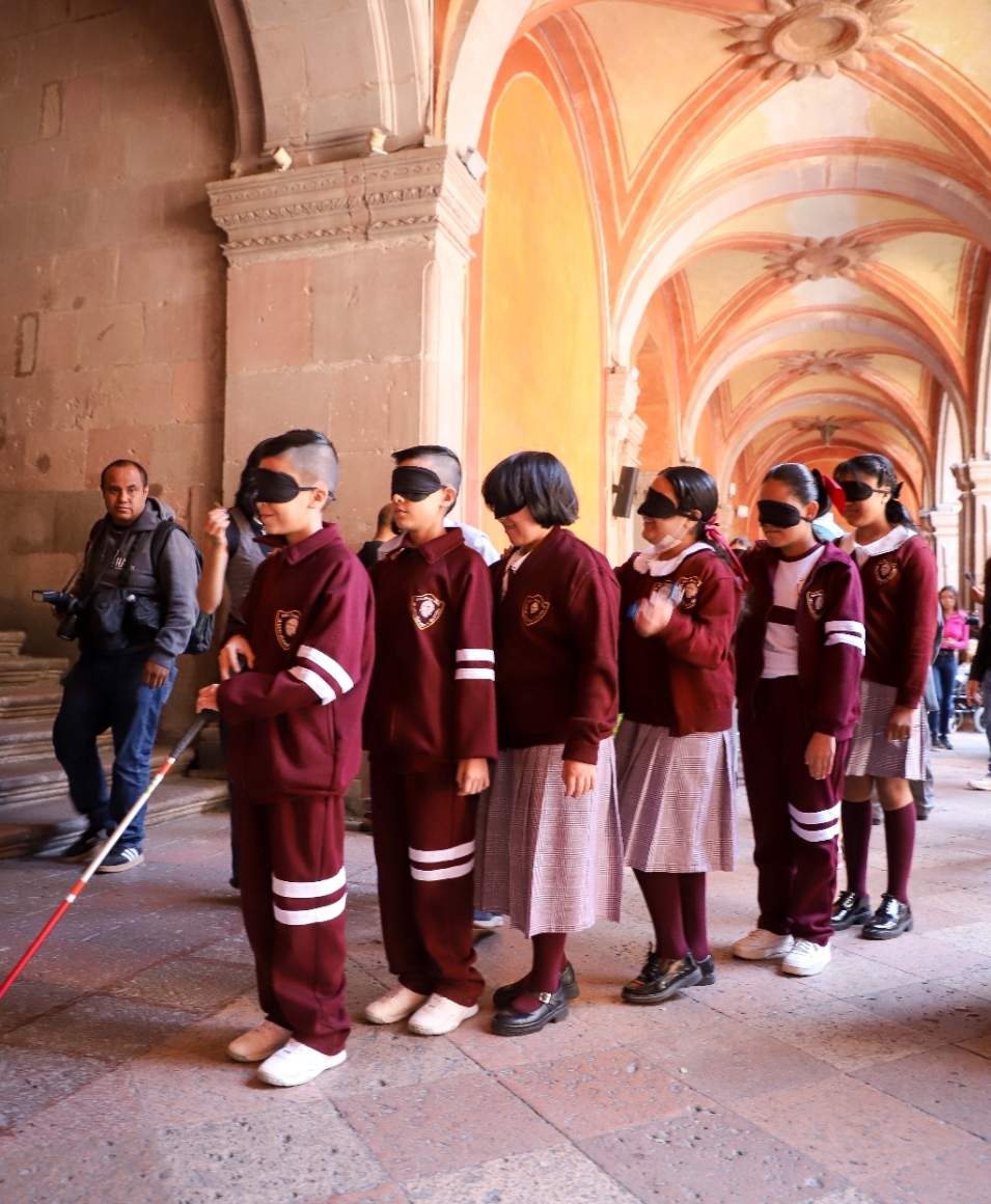 Durante la ceremonia, se realizó un recorrido sensorial en el que participaron niñas y niños con discapacidad, acompañados por sus tutores, así como un taller de escritura en braille. El objetivo fue ofrecer una experiencia que estimule los sentidos y permita conocer el arte desde distintas perspectivas.