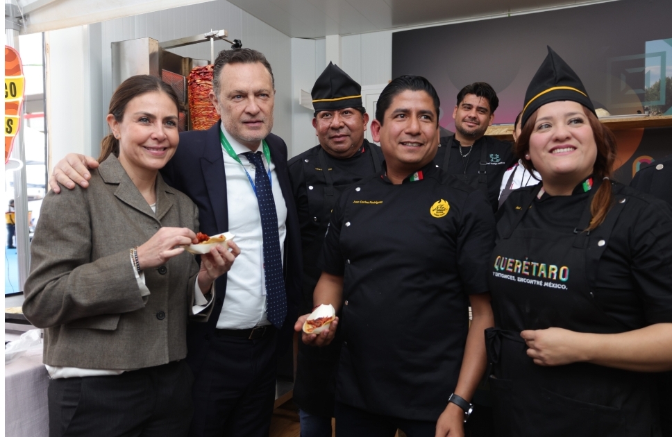 Durante esta jornada, Kuri González inauguró el Pabellón Gastronómico de Querétaro, un espacio exclusivo dentro de la FITUR, dedicado a la exposición de la cocina queretana, donde se ofrece a las y los visitantes diversos platillos locales durante los días del evento internacional.