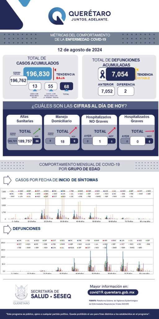 Toda persona con sintomatología respiratoria aguda deberá mantenerse aislada o en su defecto, usar cubreboca, y comunicarse al call center estatal 4421015205, para recibir orientación médica. Para más información sobre COVID-19 consulta los micrositios: coronavirus.gob.mx/ y queretaro.gob.mx/covid19.