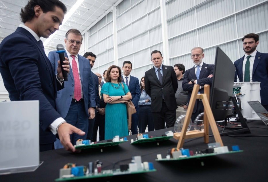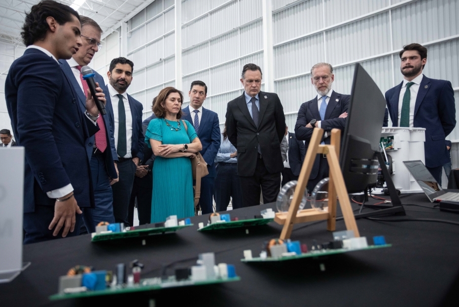 El gobernador, Mauricio Kuri González, acompañado del secretario de Economía Federal, Marcelo Ebrard Casaubón, recorrieron las instalaciones de la primera fábrica QSM Semiconductores en México, la cual está instalada en el Parque Industrial Tecnológico Innovación, en la comunidad de El Rosario, en el municipio de El Marqués.