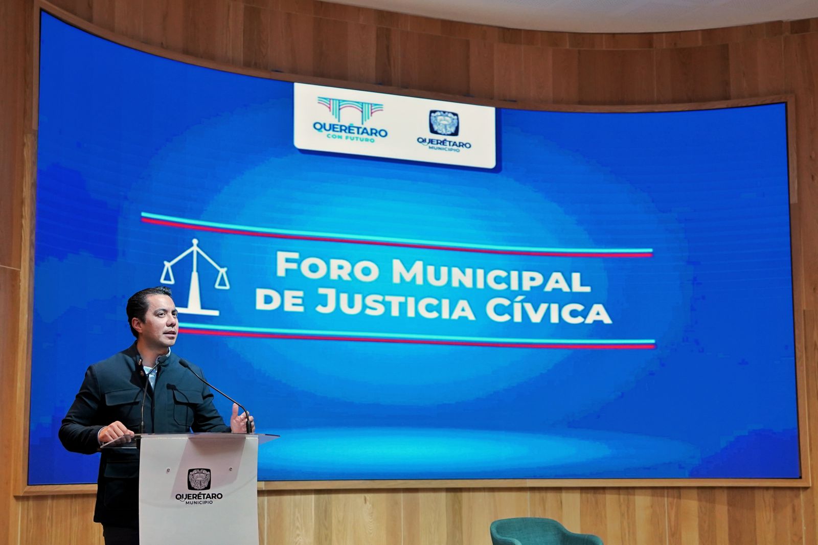 • El anuncio se realizó en el Centro de Innovación y Tecnología BLOQUE, durante la clausura del Foro Municipal de Justicia Cívica, con la participación de especialistas nacionales en seguridad y justicia cívica. Además, se contó con la asistencia del representante del Centro Nacional de Certificación y Acreditación del Secretariado Ejecutivo del Sistema Nacional de Seguridad Pública, Jorge Gustavo Flores Chacón; la coordinadora del Programa de Justicia de México Evalúa, Susana Camacho Maciel; el director de Capacitación y Formación e Investigación del CECAFIS, Alberto Luna López; el director general del Centro de Formación y Análisis para la Seguridad (CÍAS), Octavio Díaz Martínez, el director de Justicia Cívica del Municipio de Querétaro, César Antonio Zavala Díaz; así como el secretario de Seguridad Pública Municipal, Juan Luis Ferrusca Ortiz.