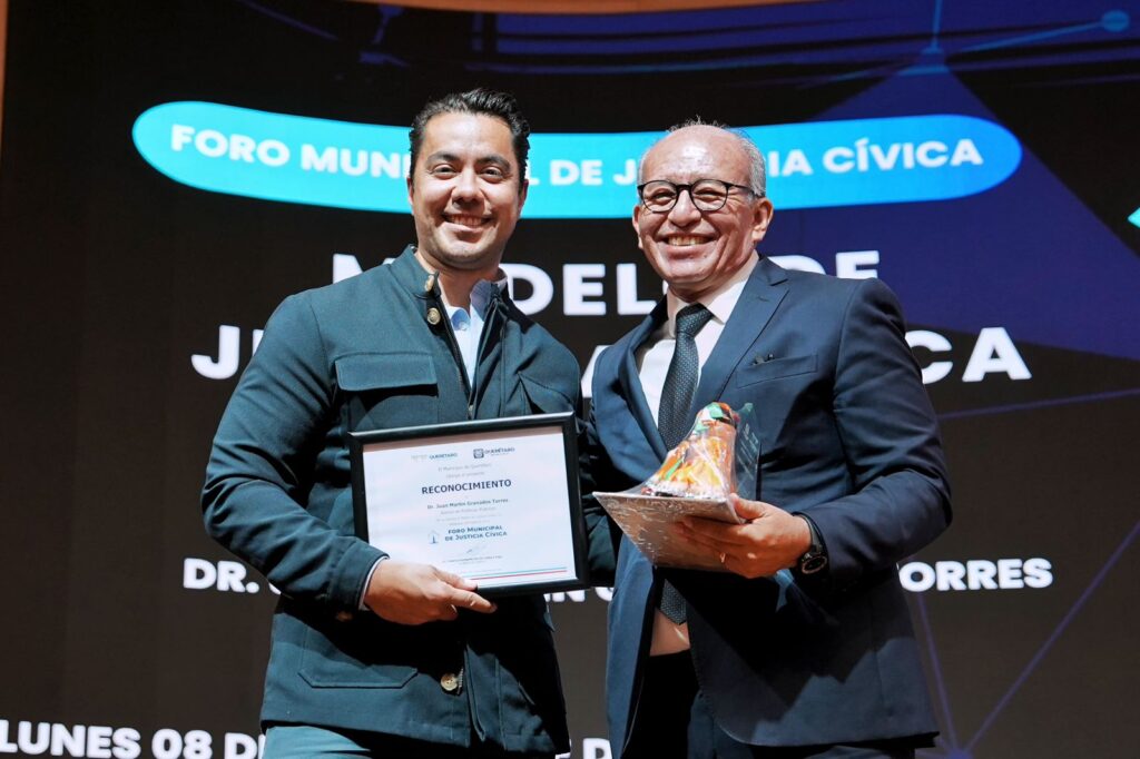 • También se reconoció la labor del Asesor en Políticas Públicas en el Estado, Juan Martín Granados Torres, por su aporte al diseño del modelo de Justicia Cívica Querétaro, consolidando un esfuerzo conjunto entre autoridades y expertos para fortalecer la eficacia de esta estrategia.