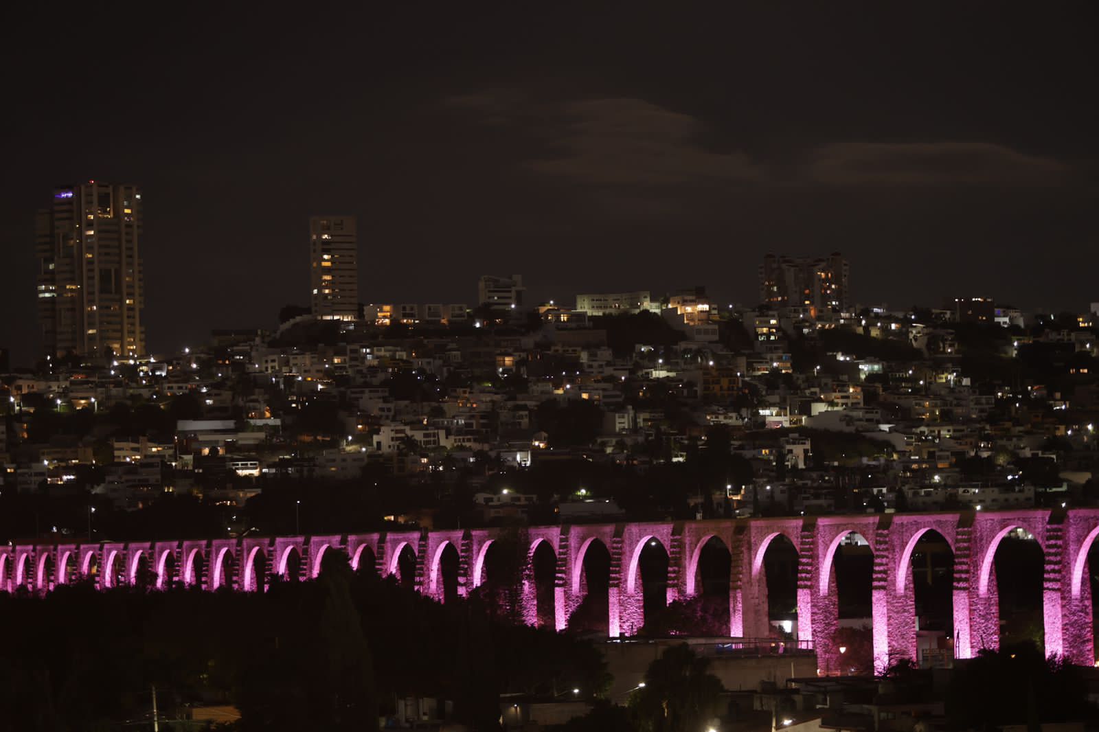 • Iluminan los Arcos y la fachada del Centro Cívico de Querétaro en conmemoración de la Lucha contra el Cáncer de Mama.