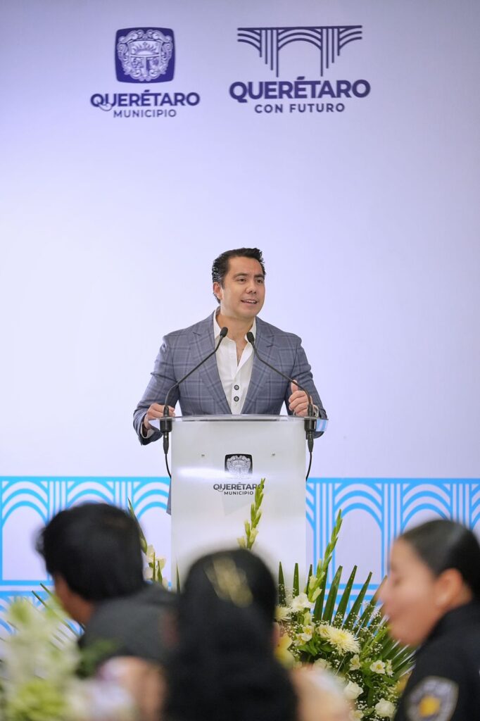 - El alcalde reconoció el esfuerzo de las y los nuevos elementos por concluir su formación para integrarse a la mejor policía de México y los exhortó a trabajar con compromiso por la seguridad de Querétaro y el bienestar de todas las familias queretanas.