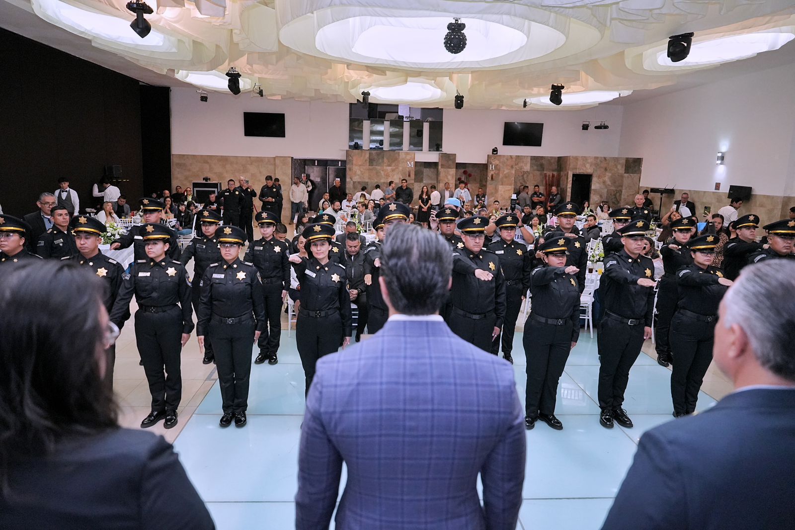 - Asimismo, indicó que la formación de nuevos elementos sigue en marcha, por lo que antes de concluir el año se sumarán 37 nuevos policías municipales y, de manera paralela, más de 30 agentes de seguridad especializados se incorporarán para ampliar la capacidad operativa y brindar una mejor respuesta ante cualquier situación.