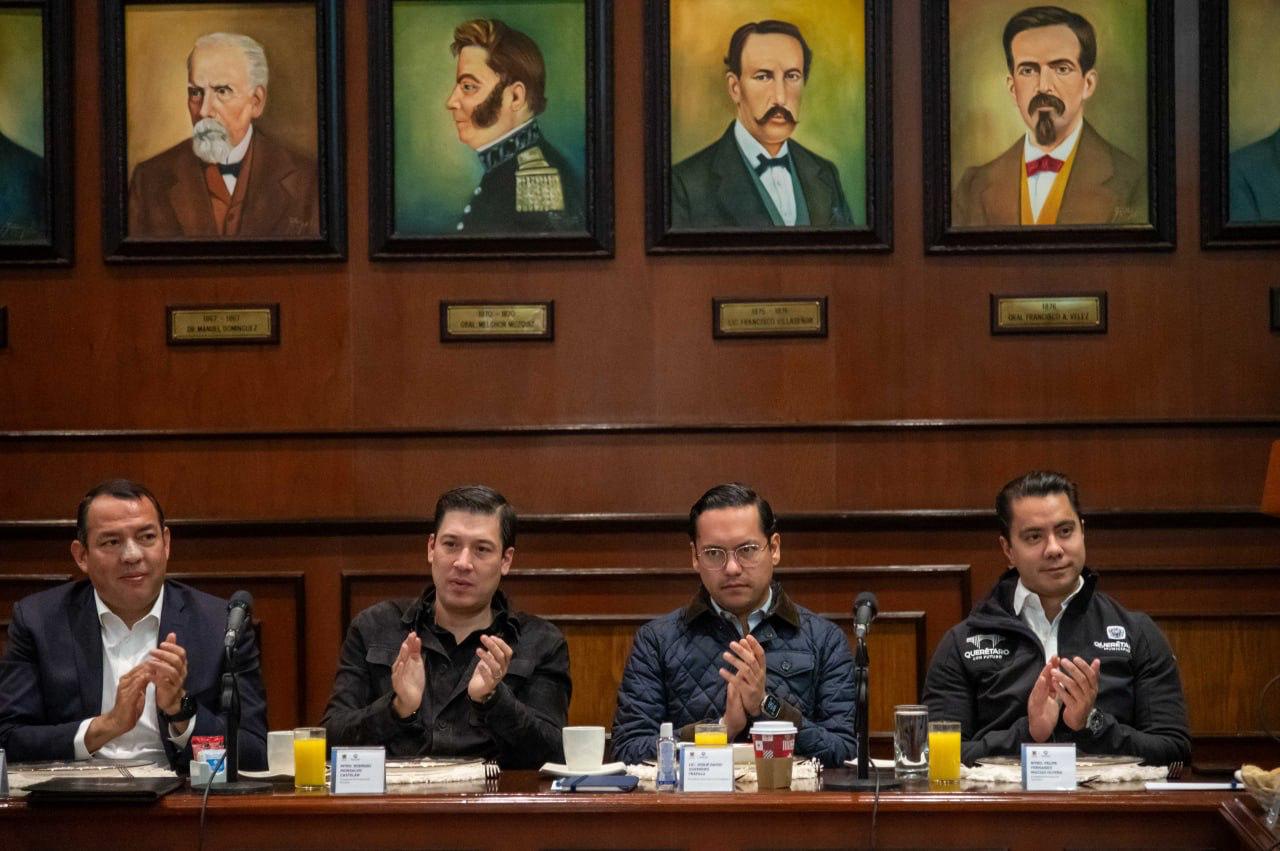 El presidente municipal de Querétaro, Felifer Macías, participó en la Mesa para la Construcción de la Paz y la Seguridad, presidida por el Gobernador del Estado, Mauricio Kuri González, en el Palacio de la Corregidora y se reconoció el esfuerzo conjunto entre los distintos niveles de gobierno para procurar por la tranquilidad de las familias queretanas.