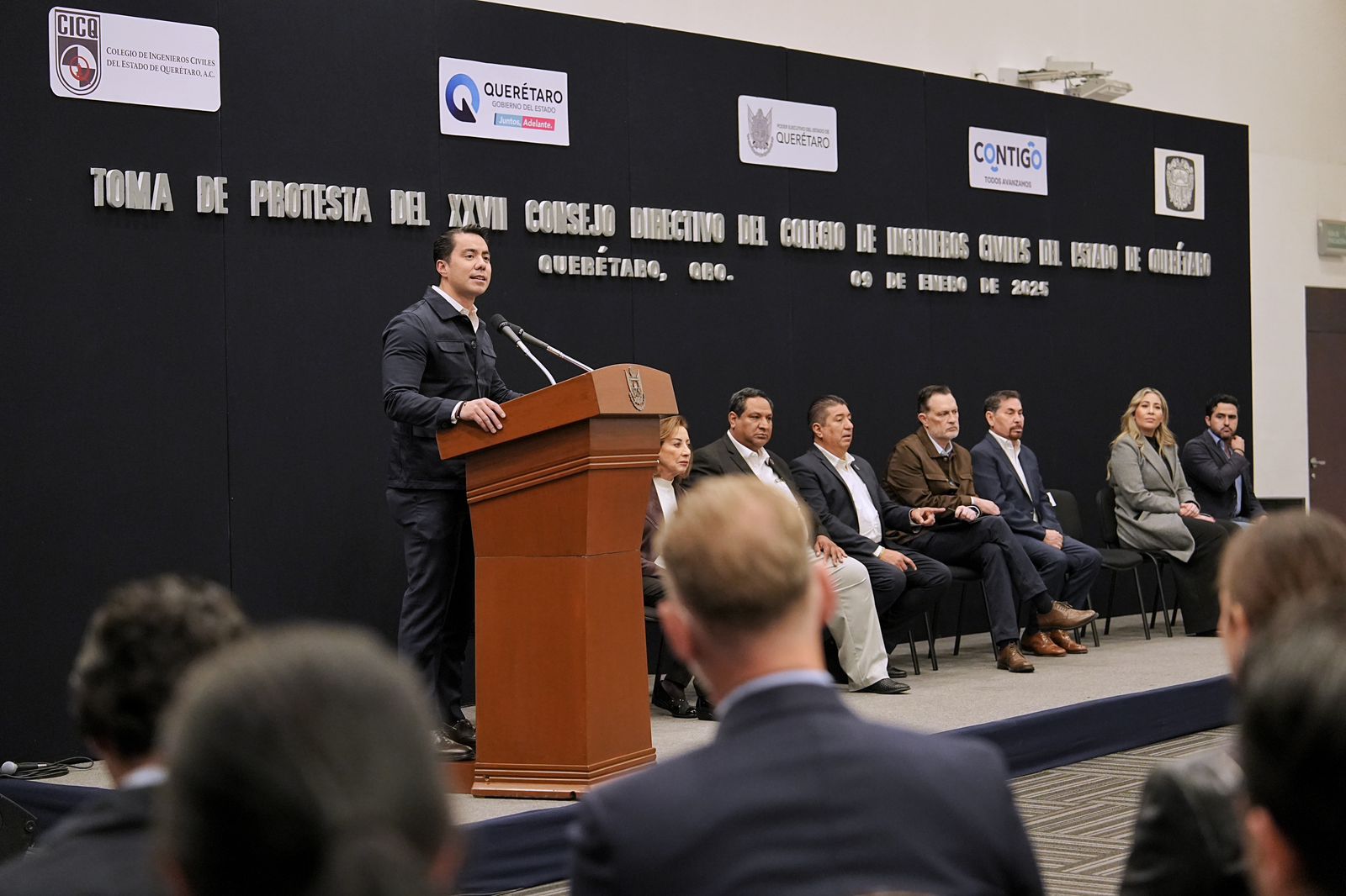 El presidente municipal de Querétaro, Felifer Macías, acompañó al gobernador del estado, Mauricio Kuri, a la Toma de Protesta del XXVII Consejo Directivo del Colegio de Ingenieros Civiles del estado de Querétaro, y destacó la relevancia de trabajar de manera conjunta con los especialistas para buscar garantizar obras de calidad que transformen la vida de las familias queretanas, dijo que este esfuerzo coordinado es clave para construir un Querétaro igualitario y lleno de oportunidades.