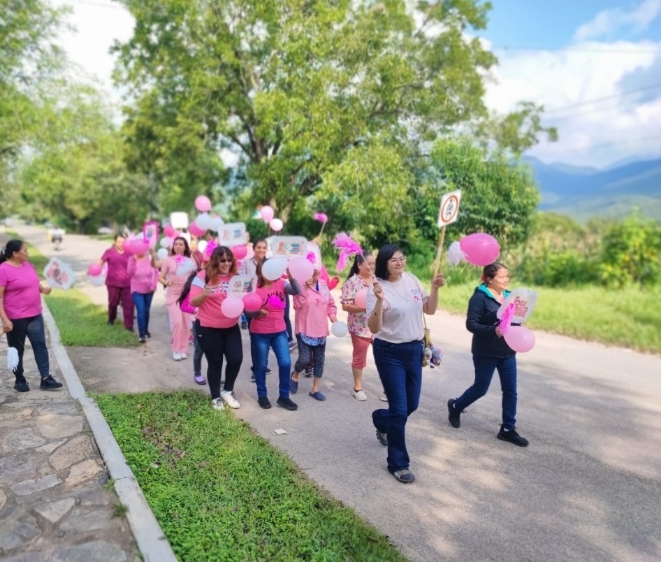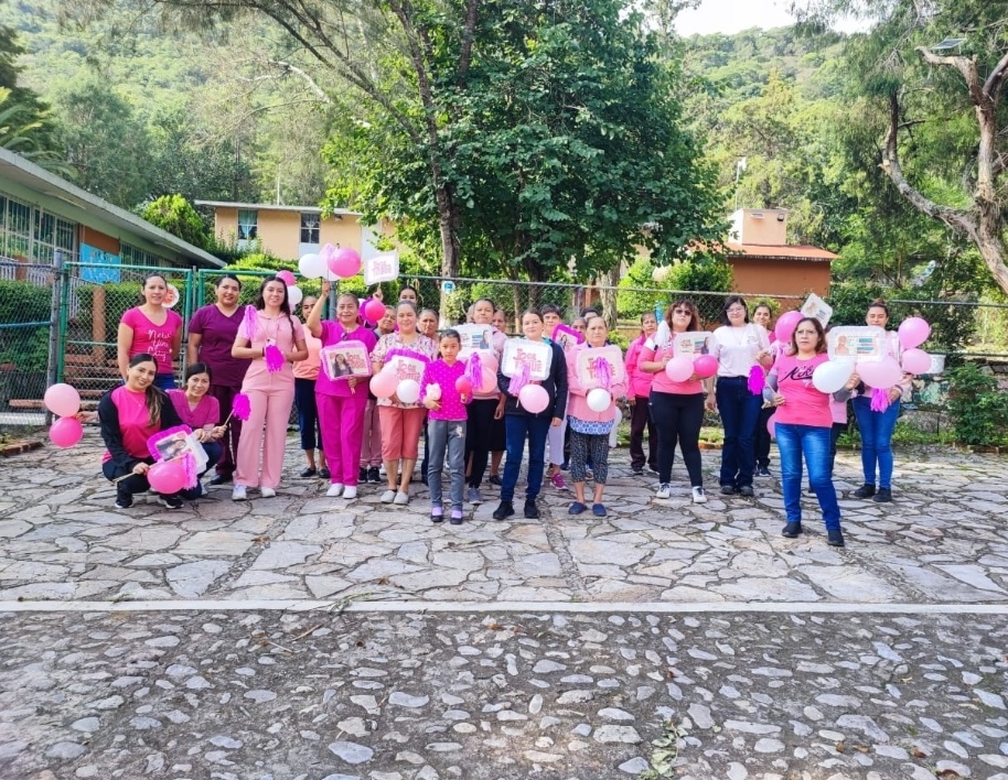 Esta actividad inició desde el albergue escolar y culminó en la plaza principal de la localidad. Durante el trayecto se promovieron mensajes alusivos a la prevención del cáncer de mama, el uso del listón rosa como símbolo de esperanza y lucha, y la necesidad de mantener estilos de vida saludables que contribuyan a reducir factores de riesgo.