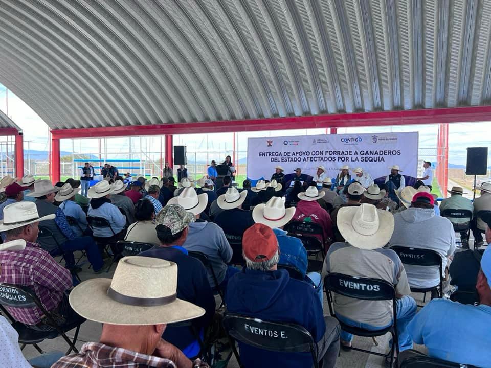 Con el objetivo de incentivar la reincorporación productiva de los productores pecuarios del municipio de Pedro Escobedo, que se vieron afectados por la sequía prolongada y la falta de agua en bordos y presas, se llevó a cabo la entrega de apoyo con forraje para alimentar a su hato ganadero y fomentar su desarrollo sin frenar su productividad.