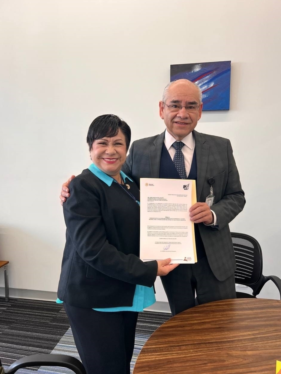 La titular de la Secretaría de Salud (SESA) del estado, Martina Pérez Rendón, recibió nombramiento como Vocal del Comité Nacional de Intercambio de Servicios de Atención Médica, representando a las Entidades Federativas no Adheridas al Acuerdo Nacional para la Federalización del Sistema de Salud para el Bienestar.