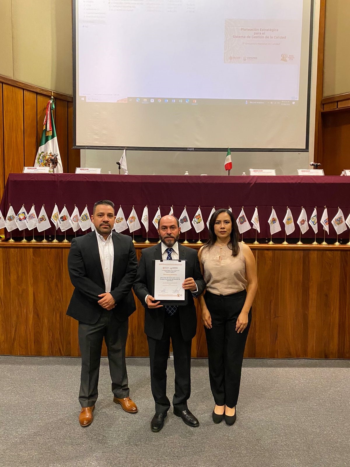 El Comisionado Federal, Alejandro Ernesto Svarch Pérez, entregó el reconocimiento al director de Protección Contra Riesgos Sanitarios, José Samuel García Sánchez. Con la creación interna del sistema de gestión de calidad se organiza, regula y se hacen más eficientes los procesos internos, garantizando un mejor servicio a la población queretana, además se reconoce y evalúa el trabajo diario y se aprovecha al máximo la experiencia, capacidad y profesionalismo del equipo de trabajo.