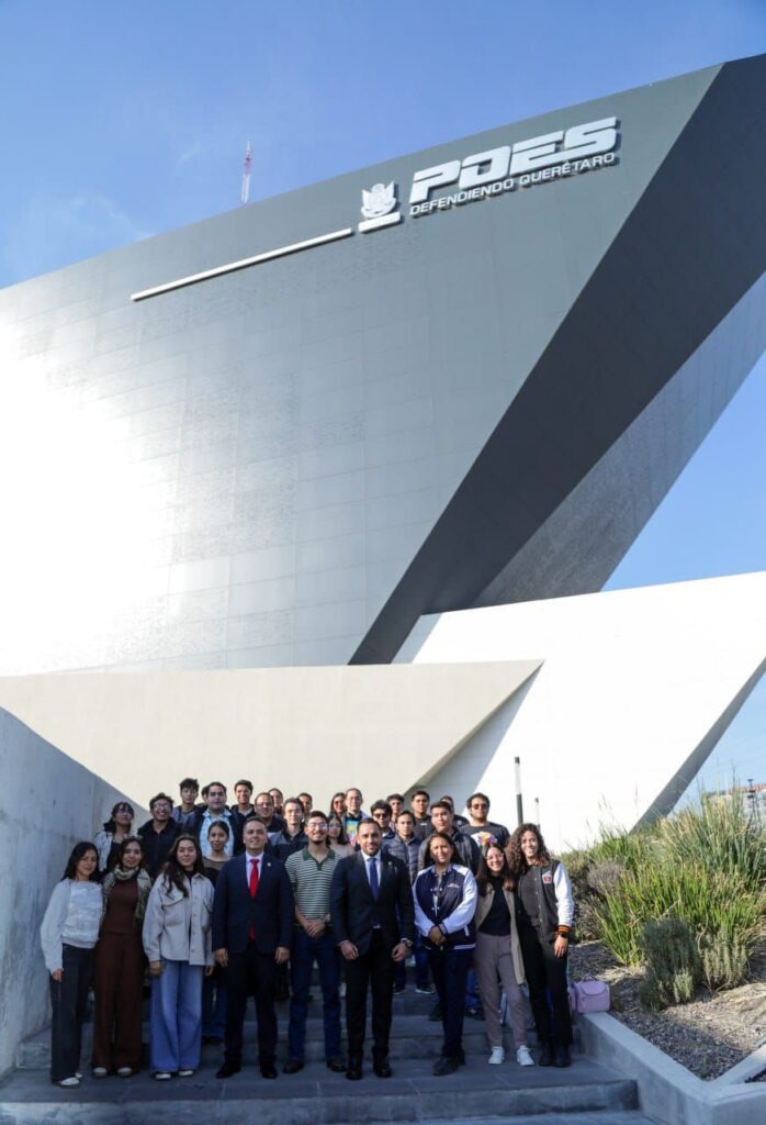 Con el propósito de que conocieran de manera directa las instalaciones, procesos y funcionamiento del Complejo de Seguridad Rhino, el secretario de Seguridad Ciudadana, Iován Elías Pérez, recibió junto al secretario de Gobierno, Eric Gudiño Torres, a estudiantes de la Universidad Autónoma de Querétaro (UAQ) y del Instituto Tecnológico de Querétaro (ITQ).