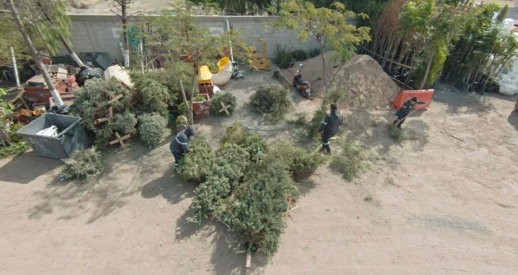 Los árboles recolectados son triturados para producir composta orgánica y para ornamentar jardines.