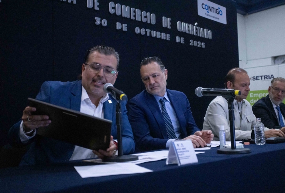 En su oportunidad, el presidente de la Cámara de Comercio, René Jovidan Loya Poletti, expresó su reconocimiento al acompañamiento del Gobernador, el compromiso y respaldo institucional al comercio formal organizado en la entidad, lo que se traduce en crecimiento de la productividad y del empleo. A su vez, reiteró el compromiso de sus más de cinco mil afiliados para abonar al crecimiento de la entidad y respaldar el proyecto Calidad Querétaro, impulsado desde la Sedesu.