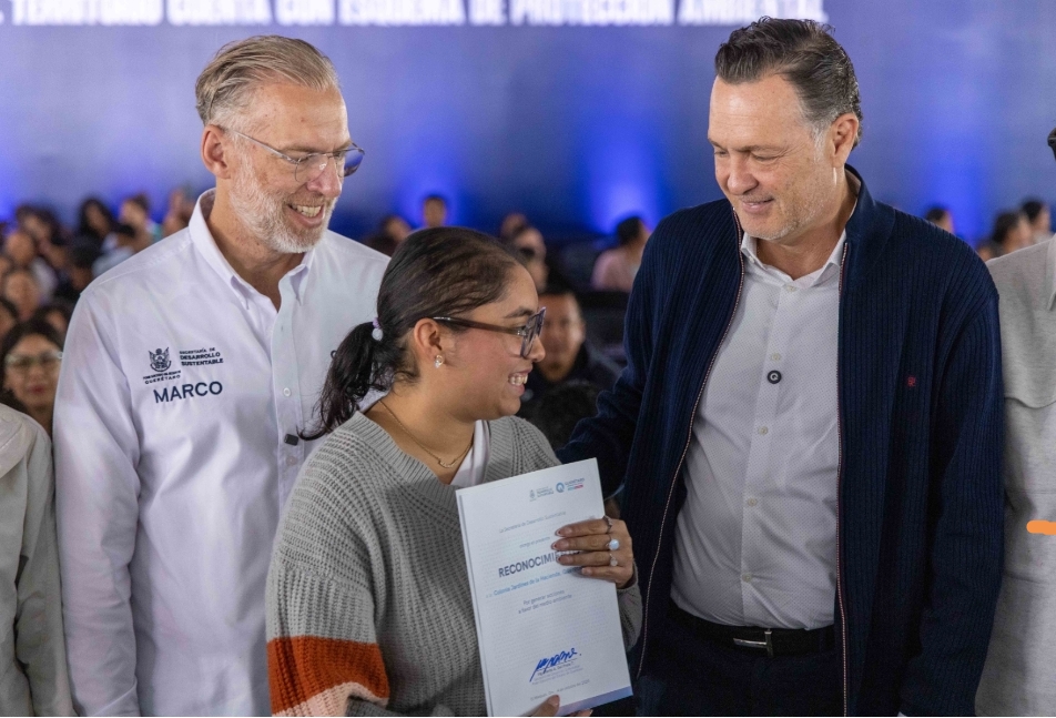 El gobernador, Mauricio Kuri González, encabezó el Encuentro de Comunidades Sustentables, en donde entregó constancias a representantes de Comités Ambientales, los cuales están integrados por ciudadanos que tienen como propósito identificar la problemática ambiental cercana a sus condominios o colonias, para poner en marcha acciones factibles que contribuyen a mantener entornos sustentables.
