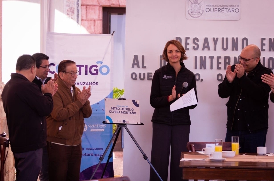 Durante la celebración se develó la placa con la que se dio el nombre del maestro Aurelio Olvera Montaño al foro al aire libre del Centro de las Artes de Querétaro, a manera de homenaje a quien ha dedicado su vida a la música, dirigió la Banda del estado durante más de cinco décadas, además de que fundó la Estudiantina de la Universidad Autónoma de Querétaro en 1963 y es hoy un referente de la cultura musical queretana.
