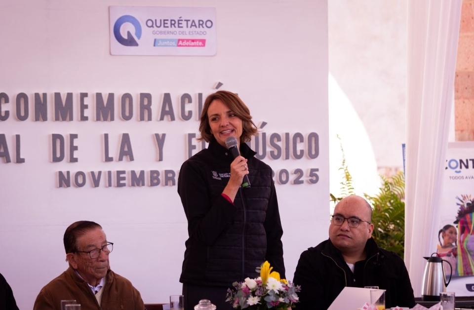 Con motivo del Día del Músico, que se celebra el 22 de noviembre, la secretaria de Cultura del estado, Ana Paola López Birlain, convivió con integrantes de la Banda de Música del Estado de Querétaro, de la Orquesta Filarmónica de la entidad (OFEQ), de las orquestas infantiles y del coro comunitario, quienes, dijo, con su arte contribuyen a la construcción de un camino para la convivencia y la cultura de paz.