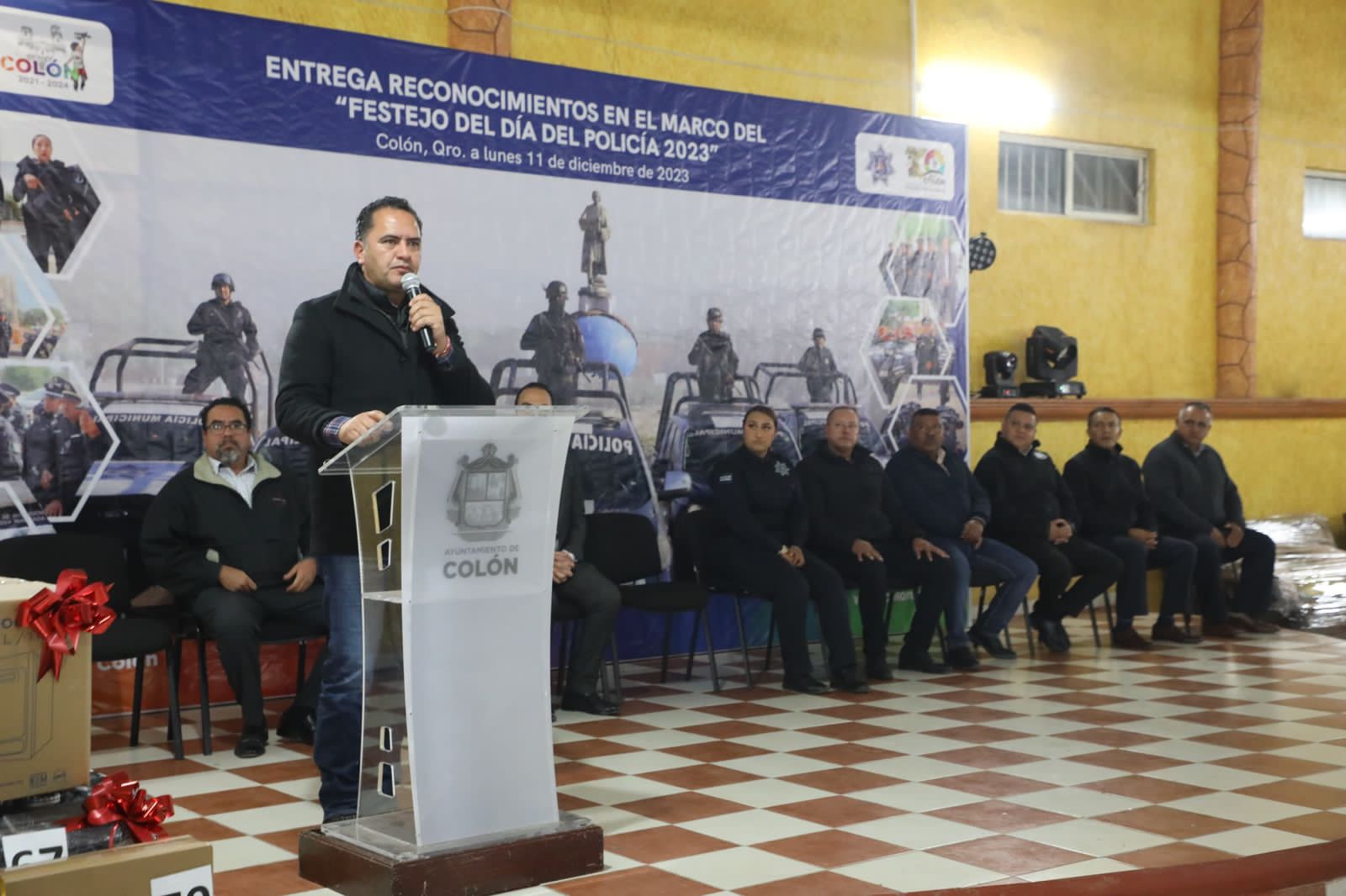 En el evento estuvieron presentes, Jorge Luis Barrera Rangel, titular de la Secretaría General de Seguridad Pública, Policía Preventiva y Tránsito Municipal; Juan Luis Ferrusca Ortiz, secretario de Seguridad Pública Municipal de Querétaro; Gustavo López, comisionado Estatal del Sistema Penitenciario de Querétaro; Juan Luis Rodríguez, secretario de Seguridad Pública de Huimilpan; Álvaro Reséndiz, secretario de Seguridad Pública de Peñamiller; Gustavo García, secretario de Seguridad Pública de Cadereyta; Rodolfo Mérida Hernández, secretario de Seguridad Pública Municipal de Tequisquiapan; Juan de Dios Alfonso Sánchez Merlo, director operativo de la Secretaría de Seguridad Pública Municipal de Corregidora; así como regidores del municipio de Colón.