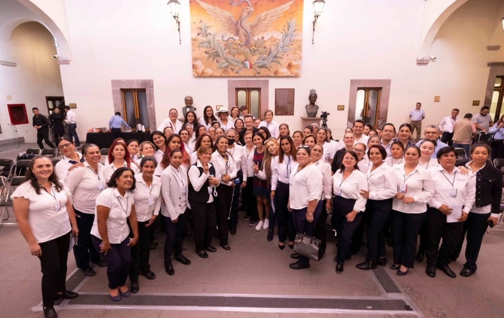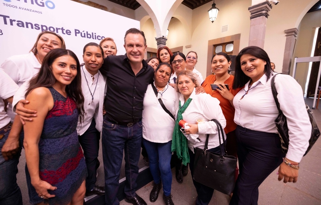 El gobernador, Mauricio Kuri González, sostuvo un encuentro con mujeres que participan en el Programa de Capacitación para Operadoras de Transporte Público, a quienes reconoció por su servicio, esfuerzo y dedicación; ahí les garantizó que se buscará brindar las mejores condiciones laborales y anunció un apoyo económico mensual de mil pesos para el cuidado de sus hijos, adicional a los beneficios actuales con los que ya cuentan.