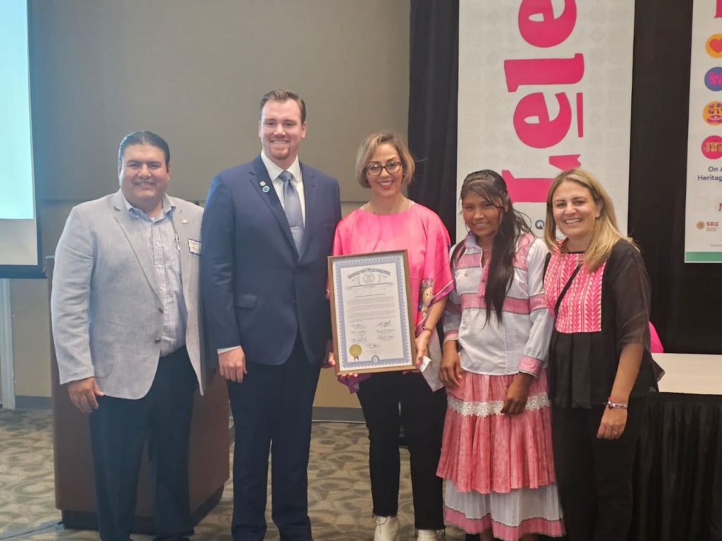 Al concluir la presencia de la muñeca Lelé en el marco de las fiestas patrias “Los Colores de México” en la ciudad de Michigan, Estados Unidos, y tras una presentación del destino Querétaro ante líderes turísticos y comerciales, autoridades locales entregaron un reconocimiento al estado de Querétaro por su labor de difusión de las tradiciones, la artesanía, la cultura y el turismo.