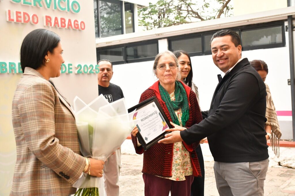 En un emotivo acto de reconocimiento, el Presidente Municipal, Rubén Hernández Robles, y su esposa, Cecilia Ugalde, destacaron la trayectoria y compromiso de la Licenciada Teresa Muñoz Ledo Rábago, quien durante 22 años desempeñó una labor invaluable como psicóloga en el Sistema Municipal DIF.