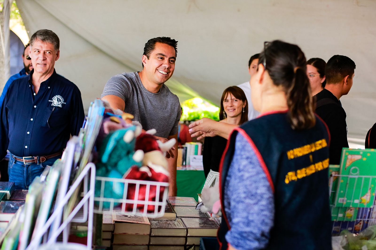 El presidente municipal electo de Querétaro, Felifer Macías, acudió a la Feria de Libro donde tuvo la oportunidad de platicar con los comerciantes y asistentes que se dieron cita en Plaza Constitución.