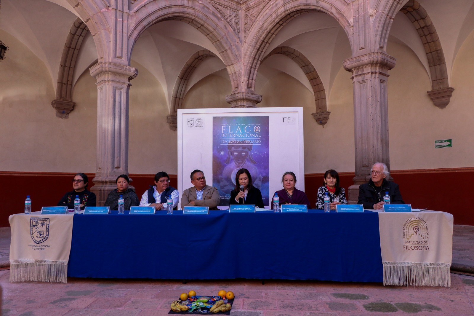 En el marco del Día Internacional de la Lengua Materna, autoridades de la Universidad Autónoma de Querétaro (UAQ), acompañados de la Secretaría de Cultura del Estado de Querétaro y los organizadores del Festival de la Lengua, Arte y Cultura Otomí FLACO, se reunieron en el Patio Barroco de la Facultad de Filosofía de la UAQ para compartir sus reflexiones en torno esta celebración e inaugurar la décima edición del festival cultural.