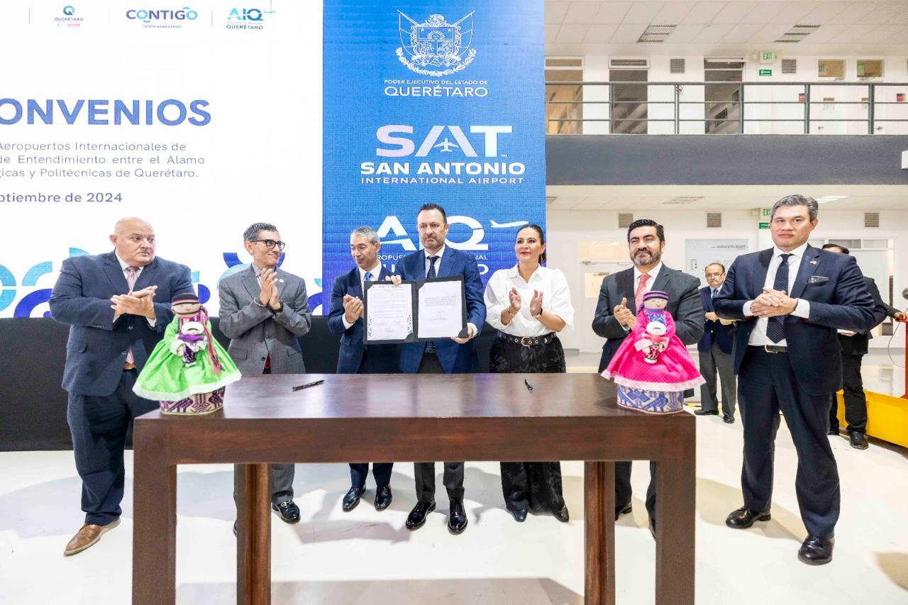 - El Gobernador y el Alcalde de San Antonio, Texas, atestiguaron la firma del acuerdo de colaboración Internacional de Aviación entre el Aeropuerto Internacional de San Antonio y el Aeropuerto Internacional de Querétaro.