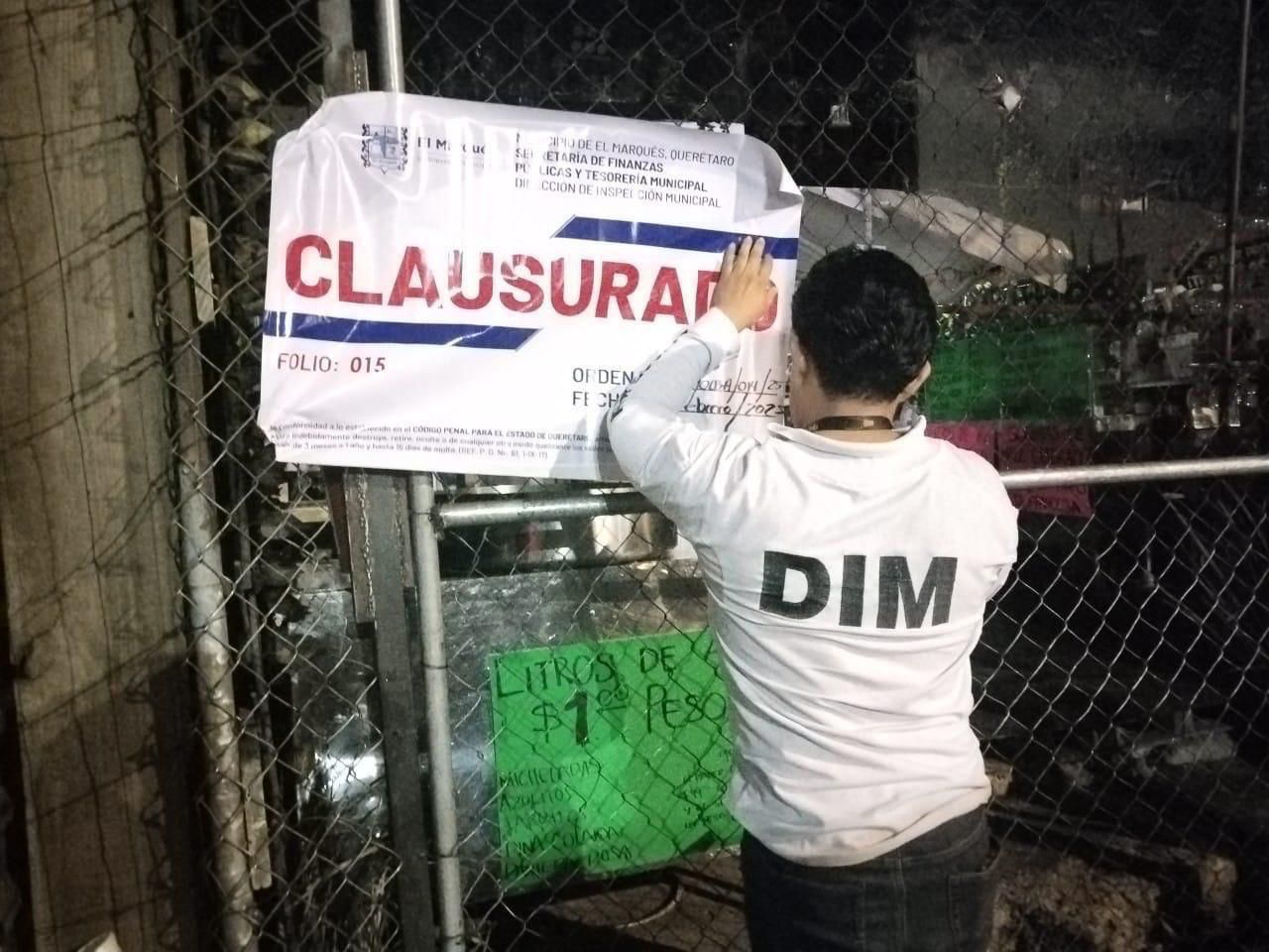Posteriormente, al corroborar que los comercios no contaban con la licencia de funcionamiento municipal de El Marqués, ni con la licencia estatal para la venta de alcohol, los inspectores municipales llevaron a cabo la clausura de ambos establecimientos.