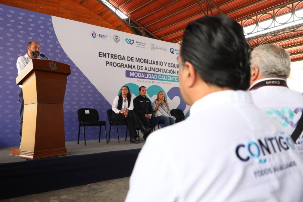 Con la finalidad de fortalecer los desayunos escolares en la Sierra queretana el gobernador, Mauricio Kuri González, entregó mobiliario y equipamiento del Programa de Alimentación Escolar Modalidad Caliente 2025 en beneficio de las niñas, niños y adolescentes de los municipios de Pinal de Amoles, Jalpan de Serra, Landa de Matamoros, Arroyo Seco, Peñamiller y San Joaquín.
