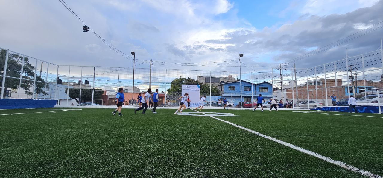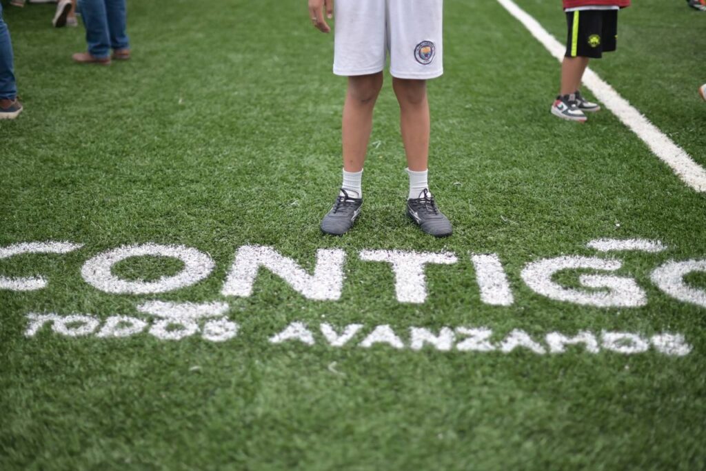 También se realizó la entrega de la cancha de fútbol 5 “Comerciantes”, así como material deportivo, en la que se instaló pasto sintético, adecuación de malla ciclónica, red perimetral en laterales, pintura en estructura y muretes.