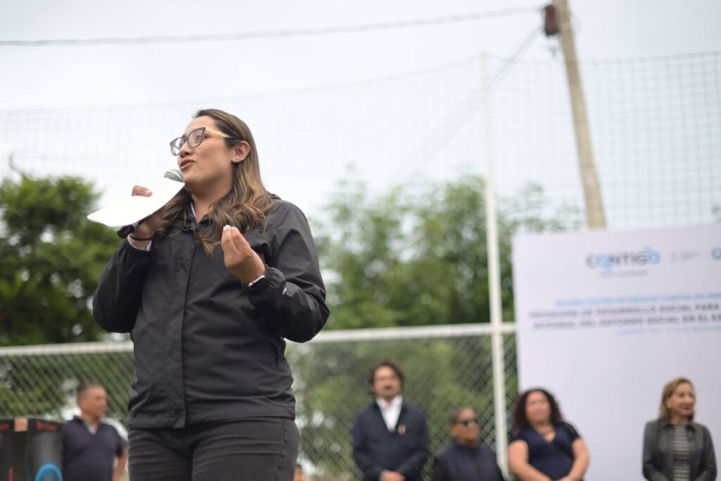 En el marco del programa para el Fortalecimiento Integral del Entorno Social, la secretaria de Desarrollo Social del Estado de Querétaro, Diana Yadira Pérez Mejía, llevó a cabo la entrega de la rehabilitación de la cancha de fútbol 5 “Mujeres Independientes», proyecto que forma parte de un esfuerzo integral para mejorar la calidad de vida y promover la cohesión social en las comunidades más vulnerables.