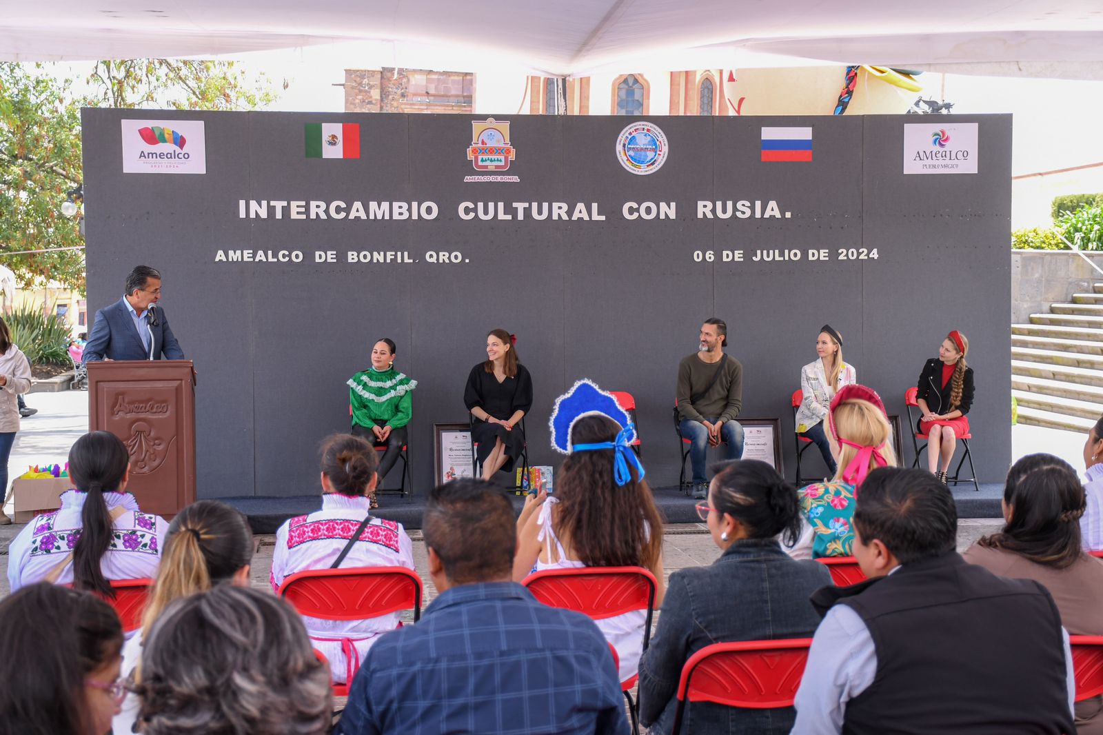 Este sábado se llevó a cabo una significativa ceremonia de intercambio cultural entre el municipio de Amealco y la Federación Rusa. El evento, liderado por el Ing. René Mejía Montoya, Presidente Municipal de Amealco, busca fortalecer lazos con la comunidad rusa tanto en México como en el mundo, promoviendo un enriquecedor intercambio de culturas y tradiciones.