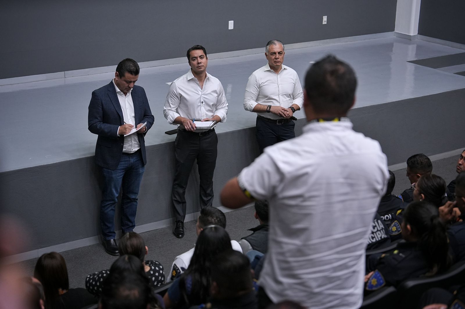 Para estar al tanto de las necesidades de la corporación, el presidente municipal de Querétaro, Felifer Macías, se reunió con el personal operativo y administrativo de la Secretaría de Seguridad Pública, donde expresó su respaldo a los elementos y los alentó a cumplir su labor con integridad y apego a la ley en favor de la tranquilidad de las familias queretanas.