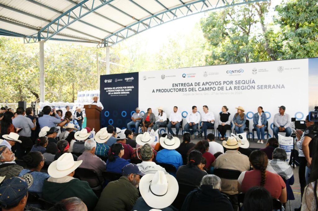El Presidente Municipal, Rubén Hernández, junto al Gobernador del Estado, Mauricio Kuri González, y el titular de la Secretaría de Desarrollo Agropecuario (SEDEA), Rosendo Anaya, encabezaron la entrega regional de apoyo en especie para productores afectados por la sequía.