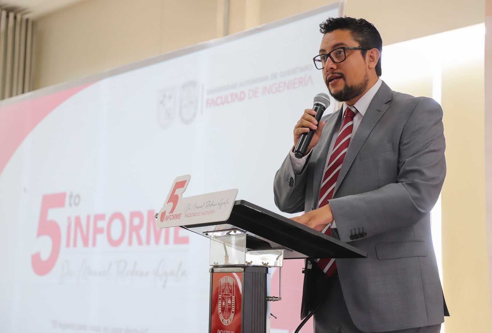 En sesión extraordinaria del Consejo Académico de la Facultad de Ingeniería (FI) de la Universidad Autónoma de Querétaro (UAQ), el Dr. Manuel Toledano Ayala, director de esta Unidad Académica, presentó su quinto Informe de Actividades.