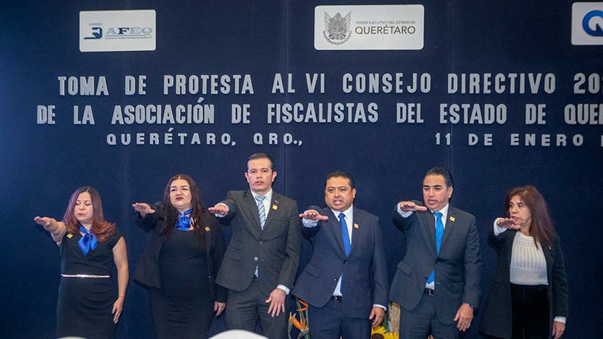 A nombre del Gobernador Mauricio Kuri, el Contralor del estado, Oscar García González tomó protesta al nuevo Consejo Directivo de la Asociación de Fiscalistas del Estado de Querétaro (AFEQ), que a partir de hoy encabeza Mario Eric Anaya Arteaga.