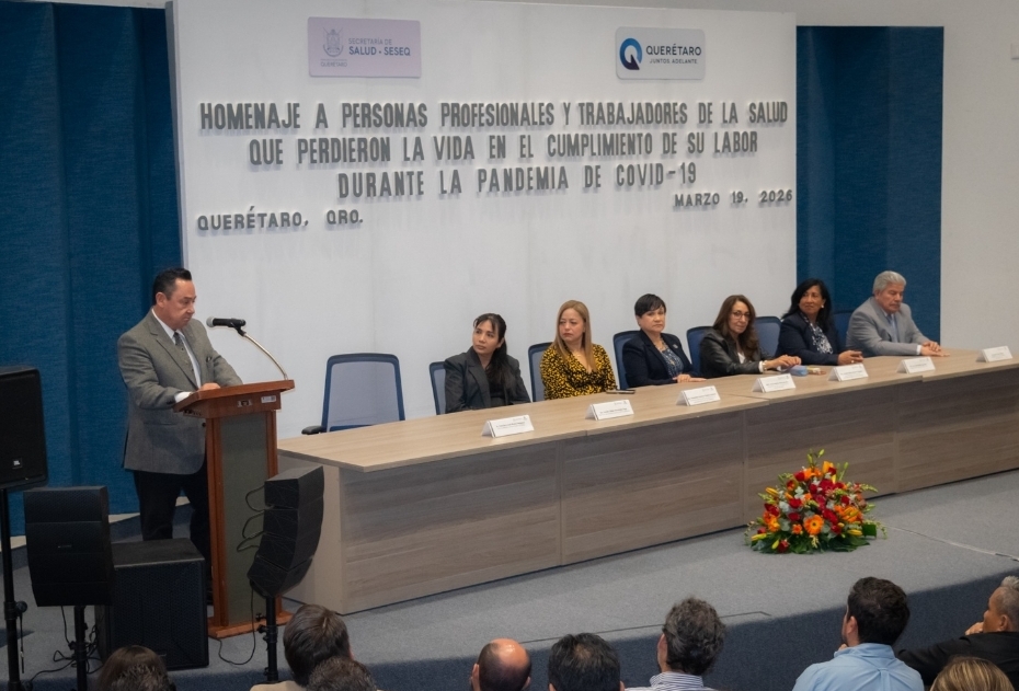 En el evento, el subcoordinador General Médico de Servicios de Salud del Estado de Querétaro (SESEQ), Francisco José Rivera Pesquera, dio la bienvenida a las y los asistentes. El Director de Servicios Médicos Hospitalarios, Hugo Daniel Cerrillo Cruz, presentó una reseña de la pandemia en el estado, destacando las acciones emprendidas por el personal de salud en los distintos sectores y niveles de atención para atender a la población.