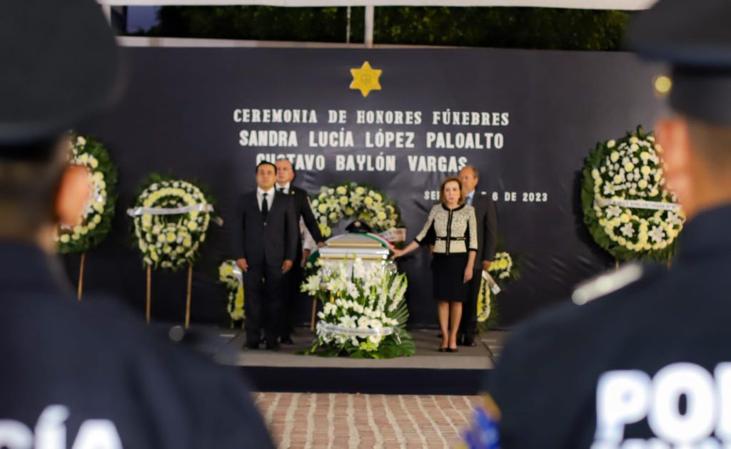 El Presiente Municipal de Querétaro, Luis Nava, en compañía de la Secretaria de Gobierno del Estado de Querétaro, Guadalupe Murguia Gutiérrez, encabezó la Guardia de Honor durante el Homenaje que se le realizó a Sandra Lucía López Paloalto y Gustavo Baylón Vargas, Policías de la Secretaría de Seguridad Pública Municipal que fallecieron el pasado martes 6 de septiembre al cumplir su labor de salvaguardar y velar por la paz social y el bienestar de las y los queretanos.