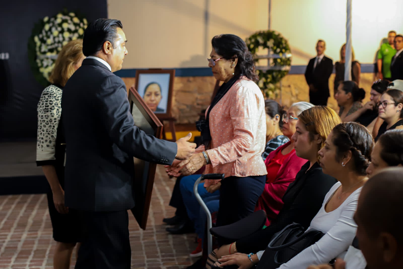 Luis Nava agregó que el oficial Gustavo Baylón contaba con una antigüedad de 15 años y 11 meses, donde realizó 122 puestas a disposición ante la Fiscalía y logró la recuperación de 26 vehículos robados, así como 46 detenciones por diferentes faltas. Mientras que Sandra López, en un año y ocho meses de servicio, y a sus 35 años de edad, realizó 32 puestas a disposición y 47 detenciones, además de la continua atención que ambos dieron en todo momento a la ciudadanía en distintas situaciones.