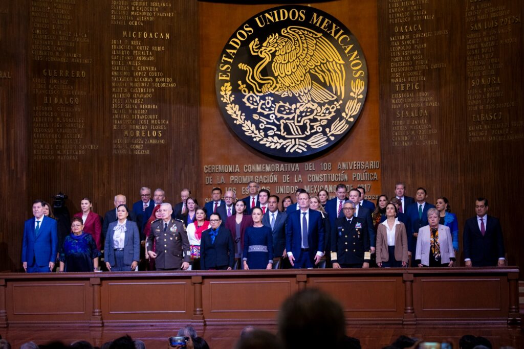 El presidente municipal de San Juan del Río, Roberto Cabrera Valencia, asistió a la ceremonia con motivo del 108 Aniversario de la Promulgación de la Constitución Política de los Estados Unidos Mexicanos, la cual fue encabezada por la presidenta de México, Claudia Sheinbaum Pardo, y el gobernador del estado de Querétaro, Mauricio Kuri González, en el Teatro de la República, en la capital queretana.