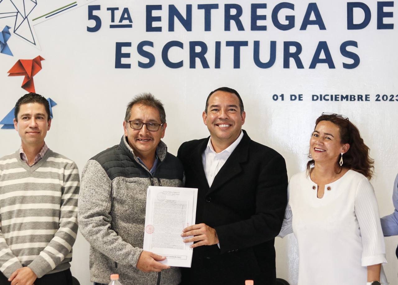 Con la entrega de 46 escrituras a familias de la Unidad Vecinal III, San Pedro Ahuacatlán, el presidente municipal de San Juan del Río, Roberto Cabrera Valencia, otorgó certeza jurídica sobre su patrimonio a las y los beneficiarios, con lo cual, además, se defiende y se ama a San Juan del Río, donde se trabaja en equipo.
