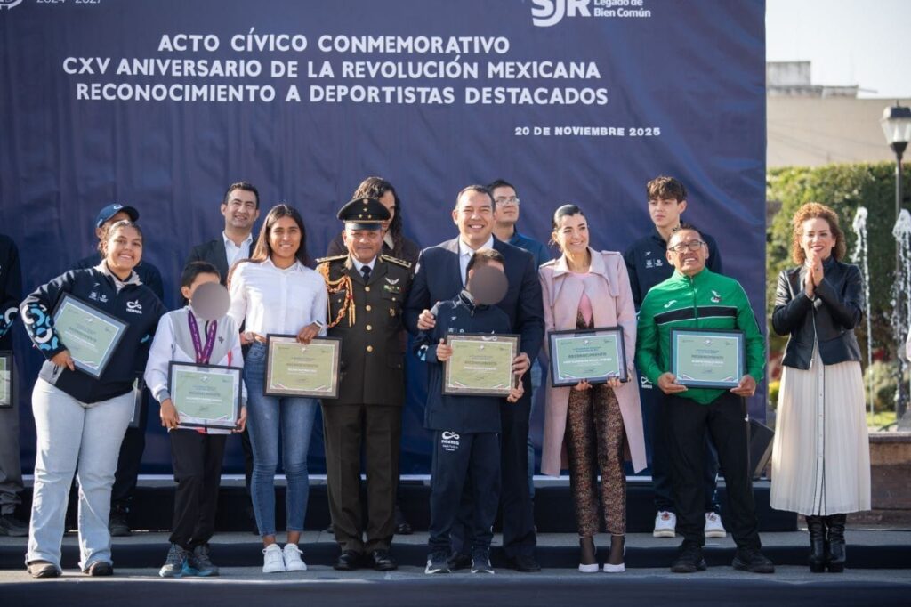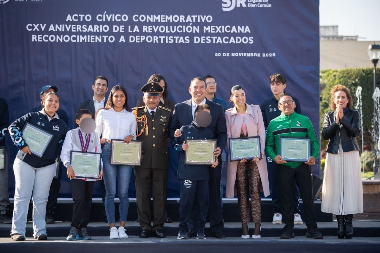 Al encabezar el Acto Cívico Conmemorativo por el 115 Aniversario del Inicio de la Revolución Mexicana, realizado en la Plaza Independencia, en el Centro Histórico del municipio de San Juan del Río, el presidente municipal sanjuanense, Roberto Cabrera Valencia, entregó reconocimientos a deportistas destacados en diferentes disciplinas.
