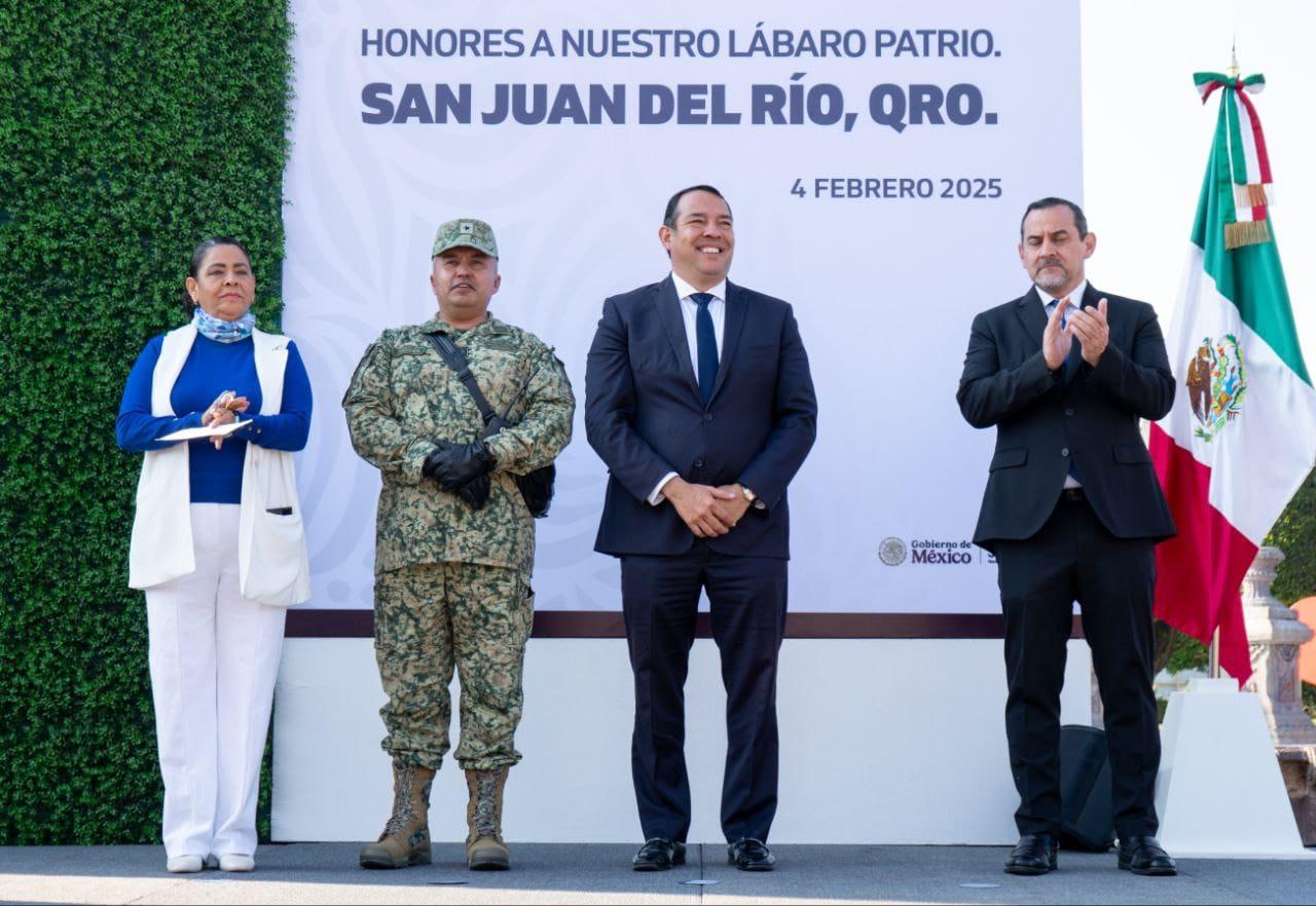 San Juan del Río tiene historia y, desde su origen, es un Legado de Bien Común, dijo el presidente municipal sanjuanense, Roberto Cabrera Valencia, durante la ceremonia de honores a la Bandera, realizada en la Plaza Independencia, en la zona Centro del municipio, en la que participaron integrantes del Ayuntamiento, del Gabinete Municipal y personal del 7º Regimiento Mecanizado La Llave.