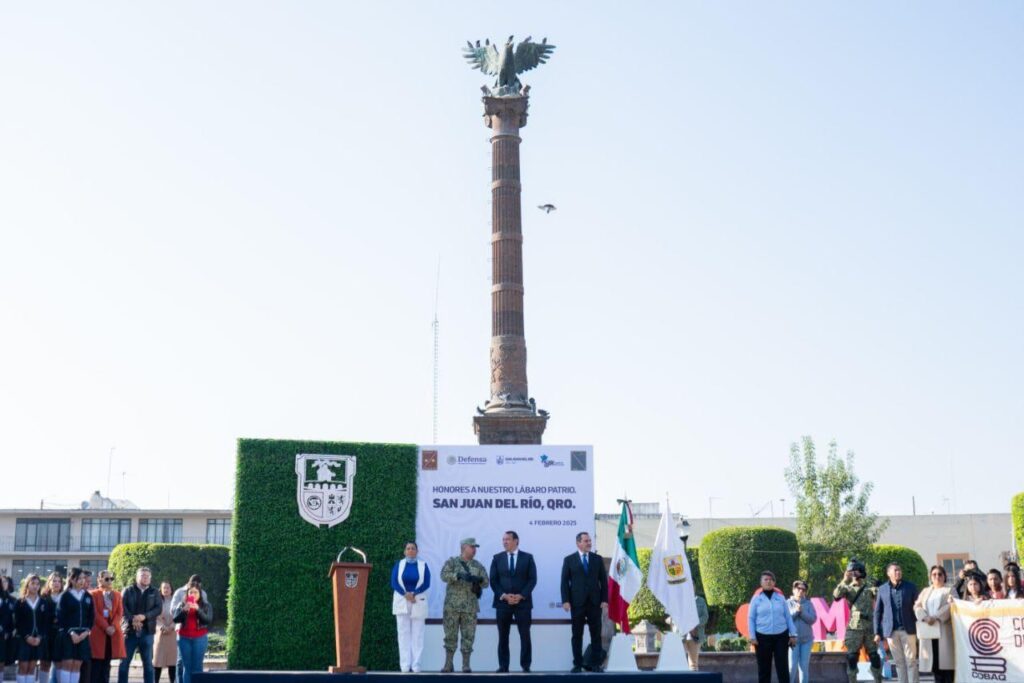 - El presidente municipal de San Juan del Río, Roberto Cabrera Valencia, anunció que, cada inicio de mes, se realizarán honores a la Bandera en esta plaza, para resaltar el amor a la patria.